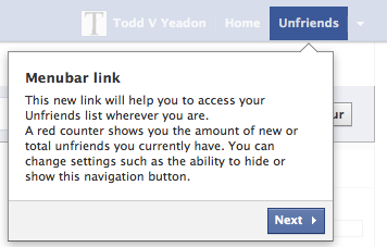Unfriend Finder shows your unfriends easy by displaying a red counter in the menubar with the amount of unfriends you have.