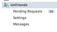 You can then access the missing profiles. Similarily on the left navigation of your Facebook home newsfeed, the number of sent requests for friends also appears and you can also access the missing profiles, settings or messages related to updates, though the best way to check for updates to the script is through the Page or the website for Unfriend Finder.