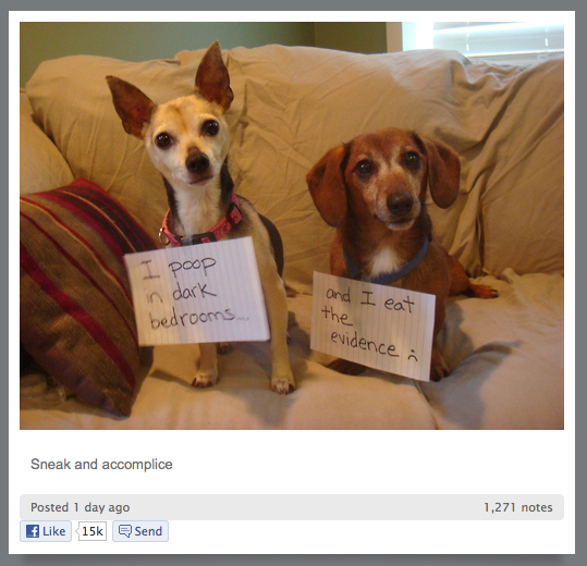 I have to admit, sometimes being a dog owner is hard. Like when my dog Wilbur ate my latest book I was reading. Or the socks. Or the remotes or…well you get the picture.Now there is a site dog-shaming.com that allows you to shame your mutt. And in the process get a bit of group support – through a laugh and know you are not alone.